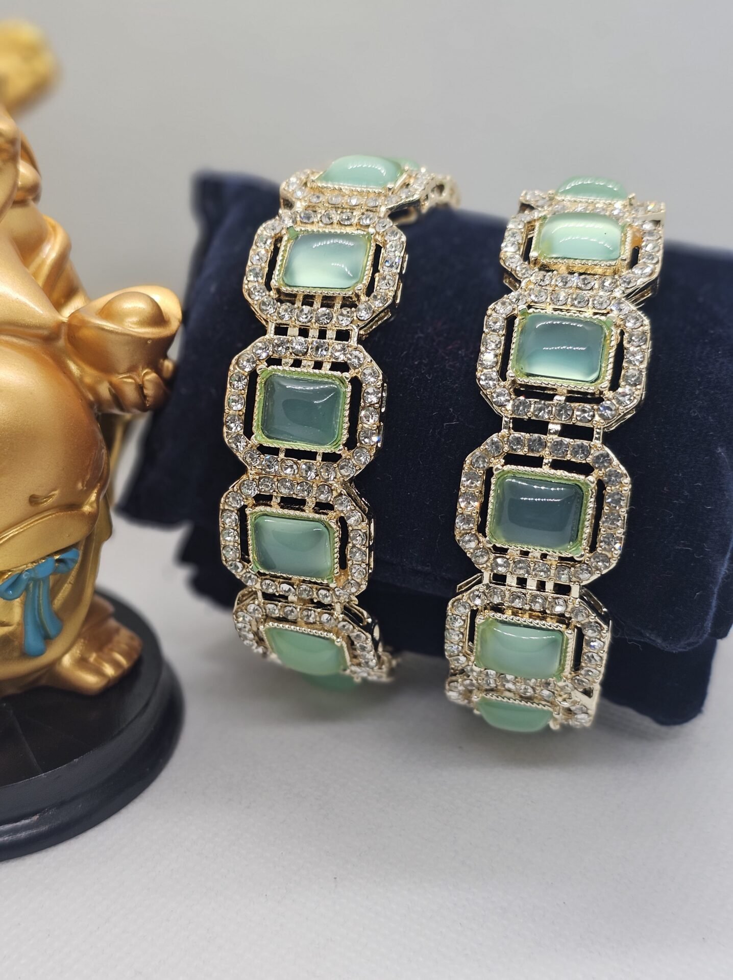 Gold Plated Light Green Color AD Bangles (86-1029)