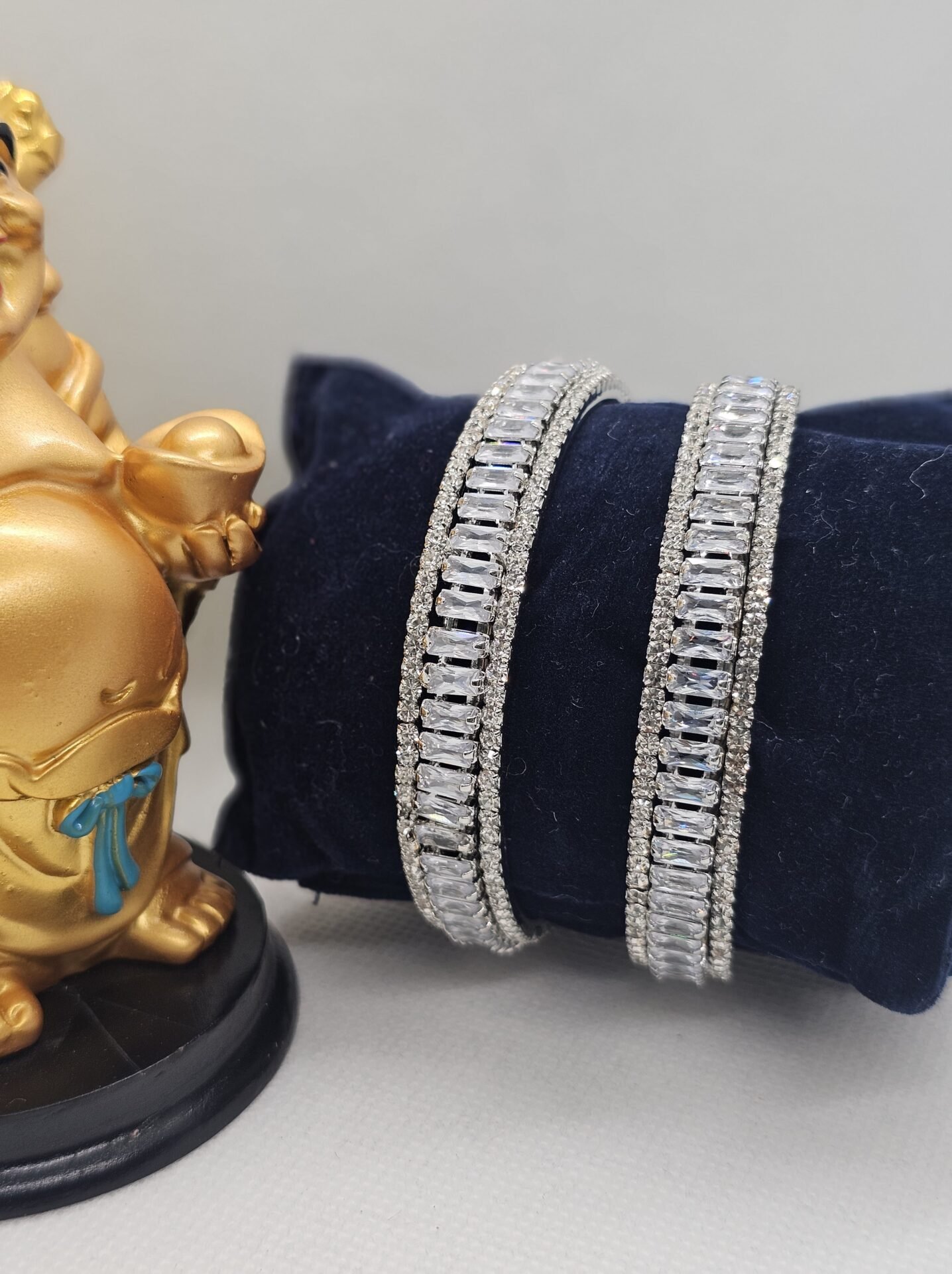 Rodium Plated AD Bangles with stone chain (105-1228)