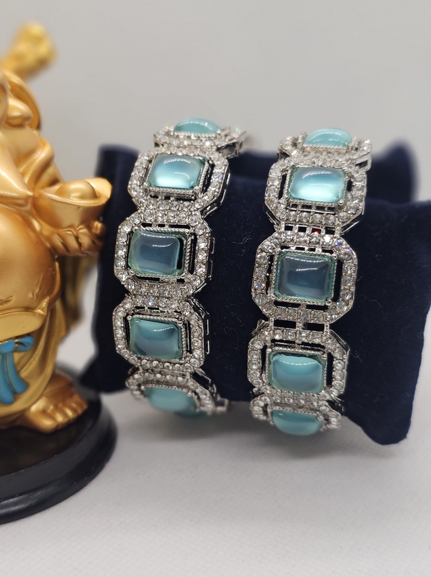 Rodium Plated blue Color AD Bangles (86-1029)